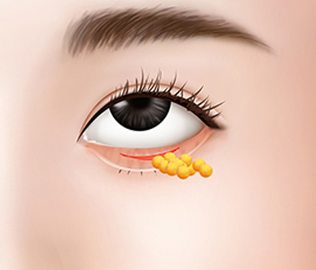 脂肪を除去し、膨らんだ目の下をなめらかで平らにする手術。