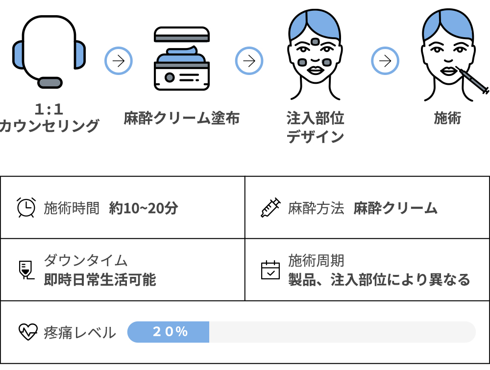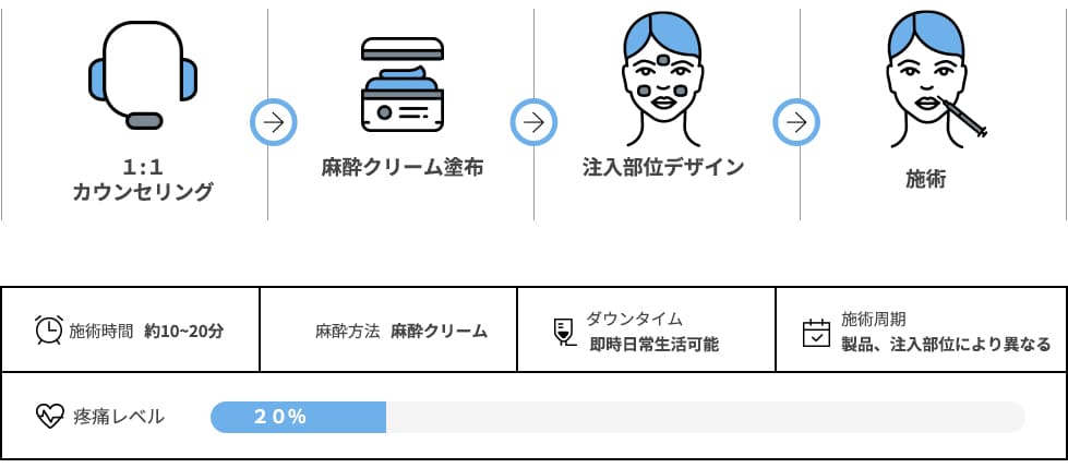 ヒアルロン酸にも麻酔成分が含まれているので痛みに関してはそれほど心配する必要はございません。