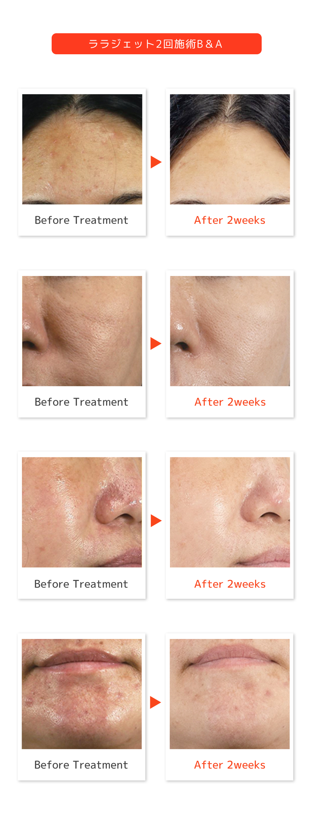 ララジェットは持続的に肌をケアし、刺激を与えずに肌を再生し、明るく澄んだ肌を維持できるようにサポートし、併用して行うことで肌を安全に保ち、その他の施術の効果を最大限に発揮させることができます。