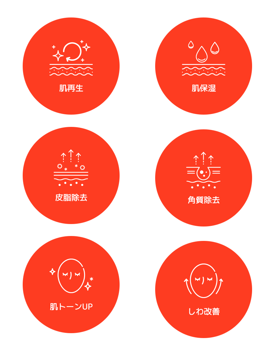 毛穴の中はもちろん、皮膚表面まで傷みなく再生させることで透明感と弾力ある肌に整えます。