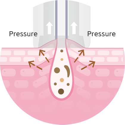負圧で肌を柔らかくして毛穴を拡張させます。