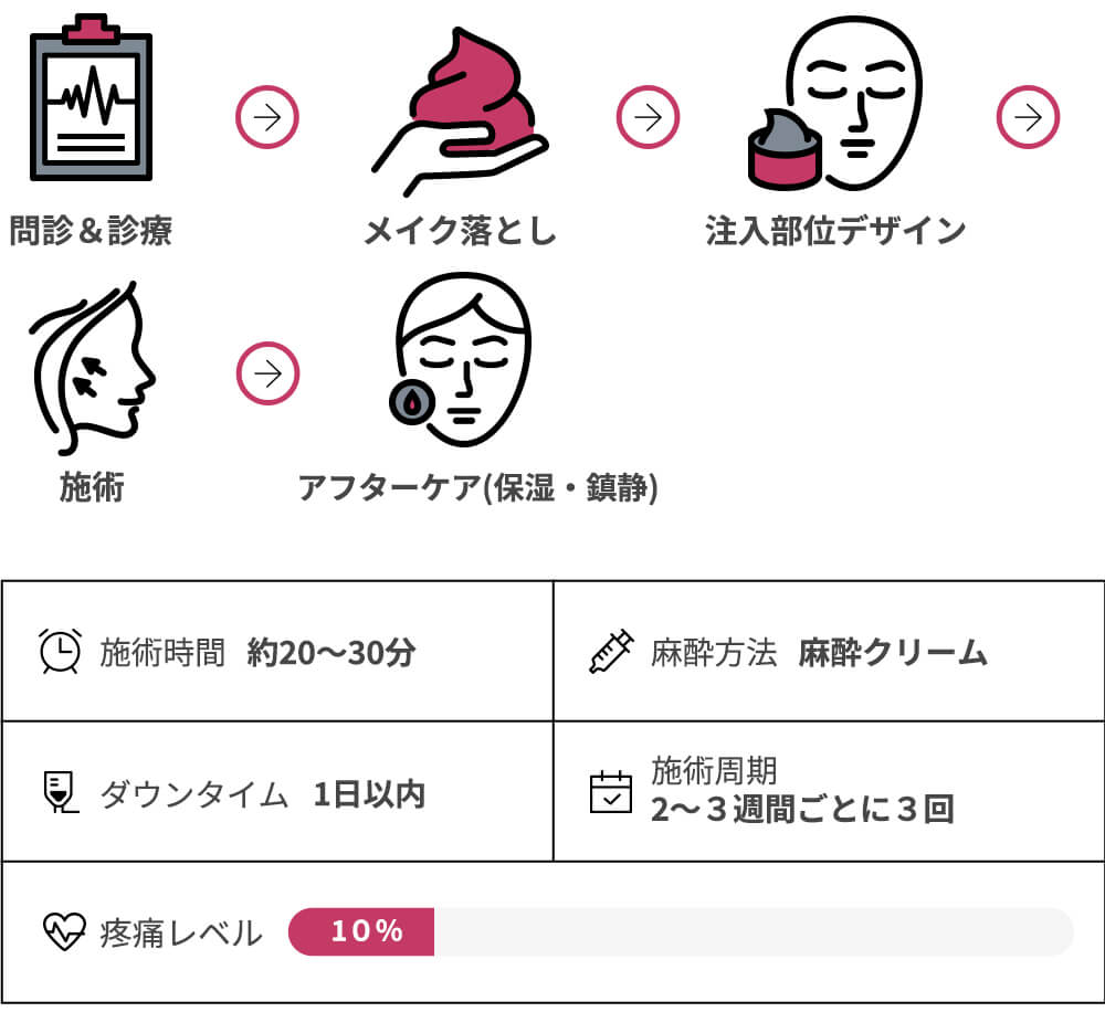 局所麻酔剤とヒアルロン酸を最適なバランスで配合することにより、