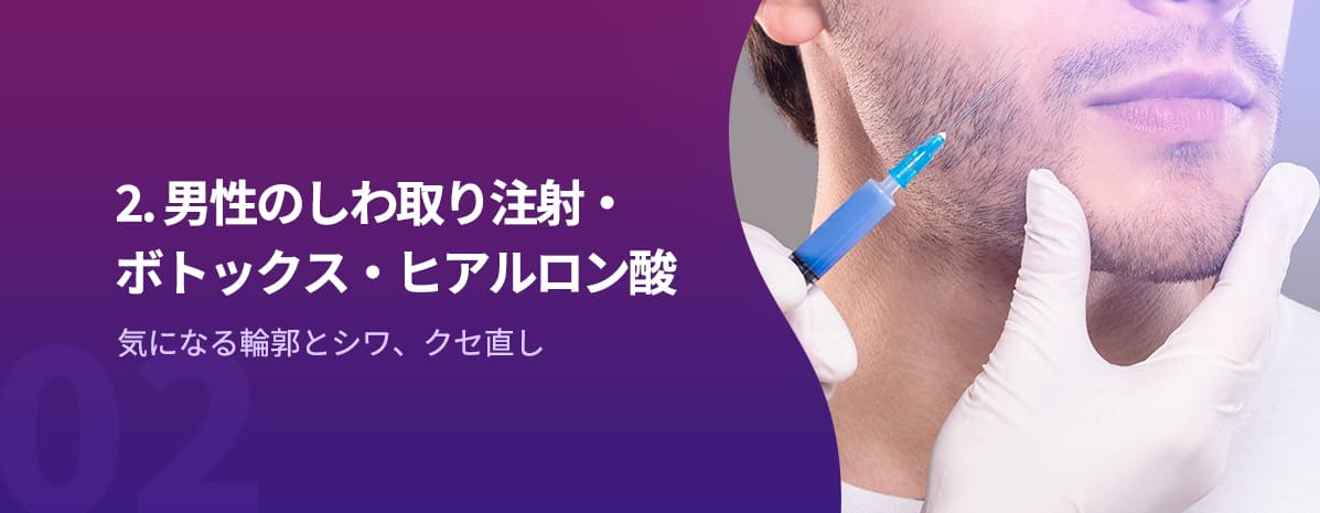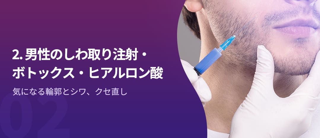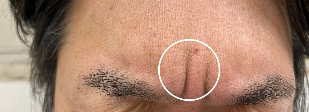 怒ったような怖い印象を与えがちです。女性の方は眉間のシワに敏感で、あらかじめケアをしますが、中年男性の場合、