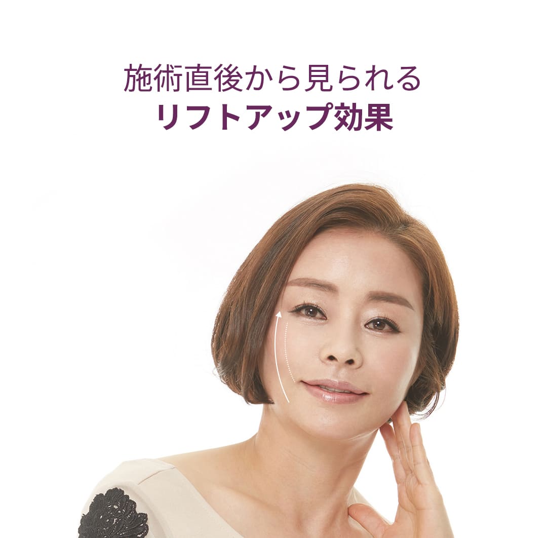 · ダウンタイムがほとんどなし:施術後は軽い腫れや内出血がある場合がありますが、メイクでカバーできる程度で、通常は当日中に日常生活に戻れます。忙しい方にも適した手軽なリフトアップ方法です。