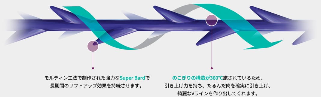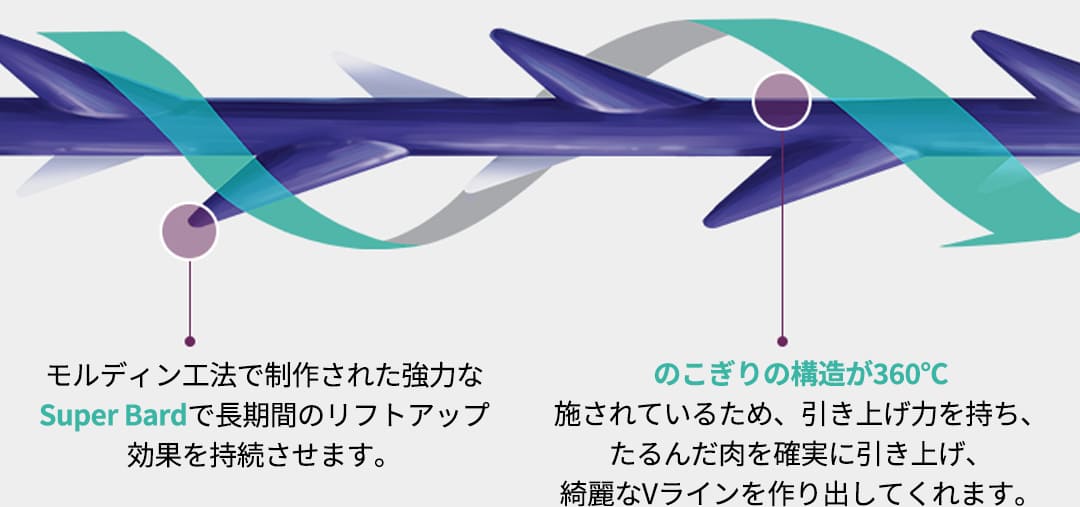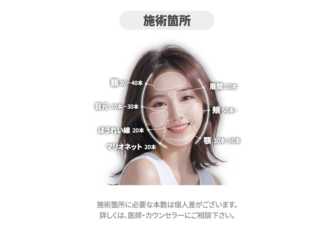 施術内容 :30分の治療時間で強力なフェイスリフト、肌の弾力アップ、小顔効果があります。韓国発祥の V Cog糸を用いたリフトアップ術です。