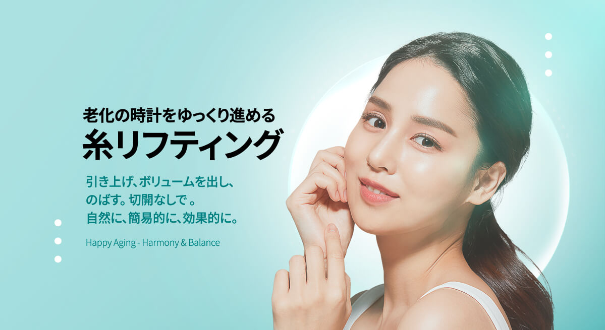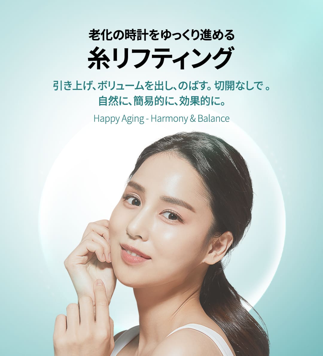 · コラーゲン生成を促進:糸の挿入による刺激が肌の再生力を高め、コラーゲンの生成を促します。これにより、肌全体が健康的でふっくらとした質感に変わり、若々しさが復活します。