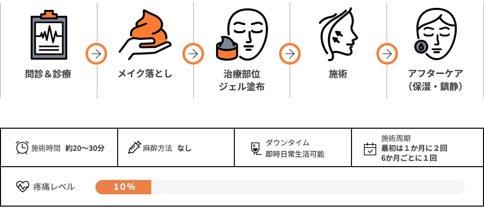また、サードパーティの機器の速い施術速度(6分)と少ない痛みで効率的な施術が可能で、